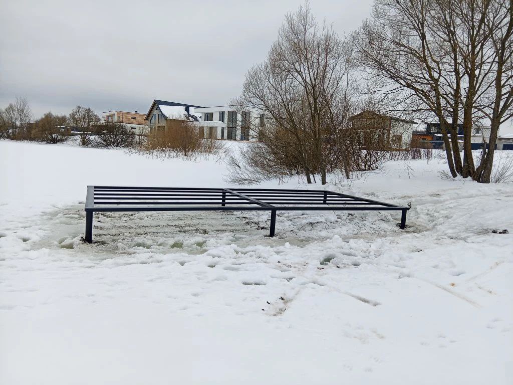 Процесс начался с тщательной разметки территории согласно проектной документации. Учитывая специфику прибрежной зоны и зимние условия, наши мастера произвели аккуратное бурение ледяного панциря в 6 точках. Это критически важный этап, так как малейшее отклонение при разметке на воде может привести к перекосу всей конструкции. Использование специализированного оборудования позволило нам подготовить лунки нужного диаметра, сохранив при этом целостность окружающего льда для безопасного передвижения монтажной бригады.