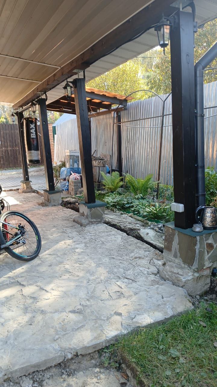 —Выдавило тумбы под опорами навеса - заменили на винтовые сваи